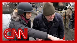 爆撃された家を見た後、ロシアに対するCNN記者の質問を聞く