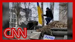 「私たちは武装していない!」:民間人はロシア軍の護送船団を見下ろしている