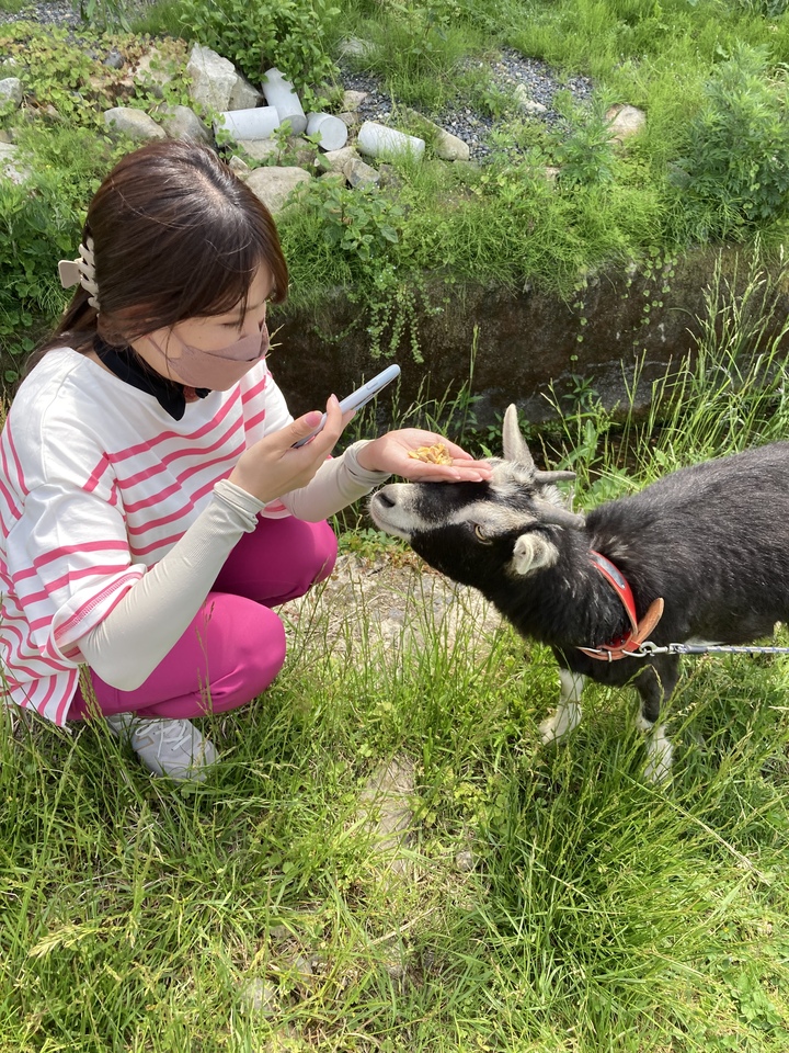 わたしも、子ヤギにミルクを飲ませたり、大好物だというコーンをあげたり、ふれあいを楽しませてもらいました。